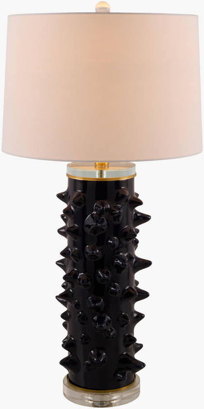 - Material: Body: Ceramic; Shade (Outside): Linen, Linen; Shade (Inside): Linen, Plastic; Finial: Iron